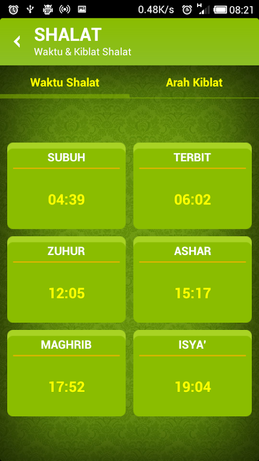1. Jadwal Shalat : Mencakup Countdown waktu shalat, Reminder Alarm, Lokasi otomatis atau Manual pilih kota